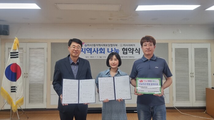 하남시 미사3동 소재 미사리버-거 본점(대표 김주은)은 지난 7월 3일(월) 미사3동지역사회보장협의체와「지역사회 나눔」협약을 체결하였다.