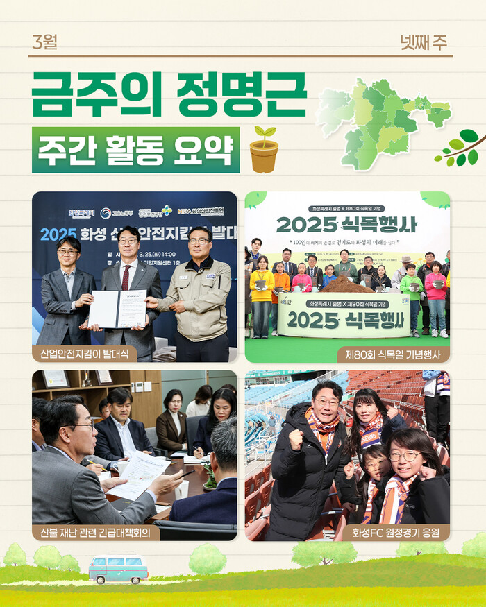 그러면서 주말에는 찬 바람이 불어온다며, 위 사진은 주말까지 시민 여러분과 함께했던 금주의 정명근이라고 밝혔다.