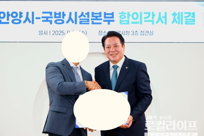 [안양=로컬라이프] 송준형 기자 = 안양시와 국방시설본부는 ‘박달스마트시티 및 50탄약대대 이전사업을 위한 기부 대 양여 합의각서’를 24일에 체결했다.