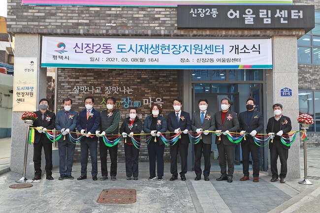평택시(시장 정장선)는 지난 8일 ‘살맛나고 장맛나는 신(新)장(醬)마을, 우리동네살리기 프로젝트’라는 슬로건을 걸고 신장2동 도시재생사업 현장지원을 위한 센터 개소식을 개최했다.