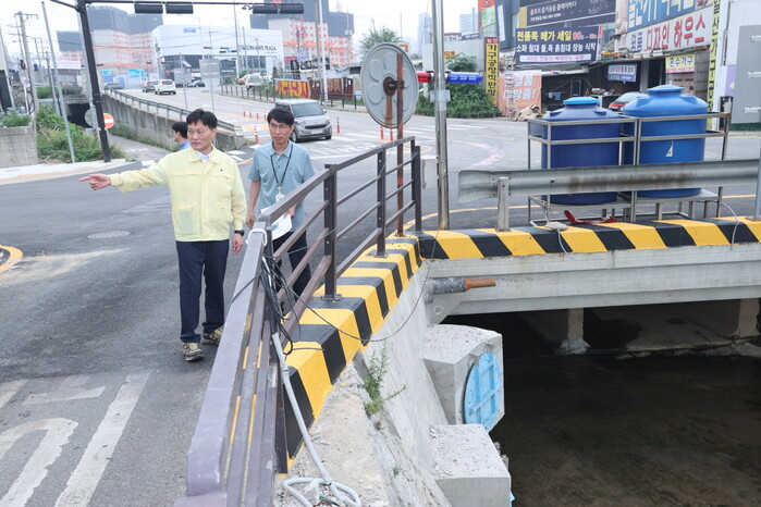 이날 구청 재난상황실 방문을 시작으로 풍동 제5간이배수펌프장을 방문해 펌프 가동현황과 배수 능력을 확인, 주요 기계 설비의 작동상태 등을 세심히 살펴보며 여름철 재난 대응 태세를 점검했다.