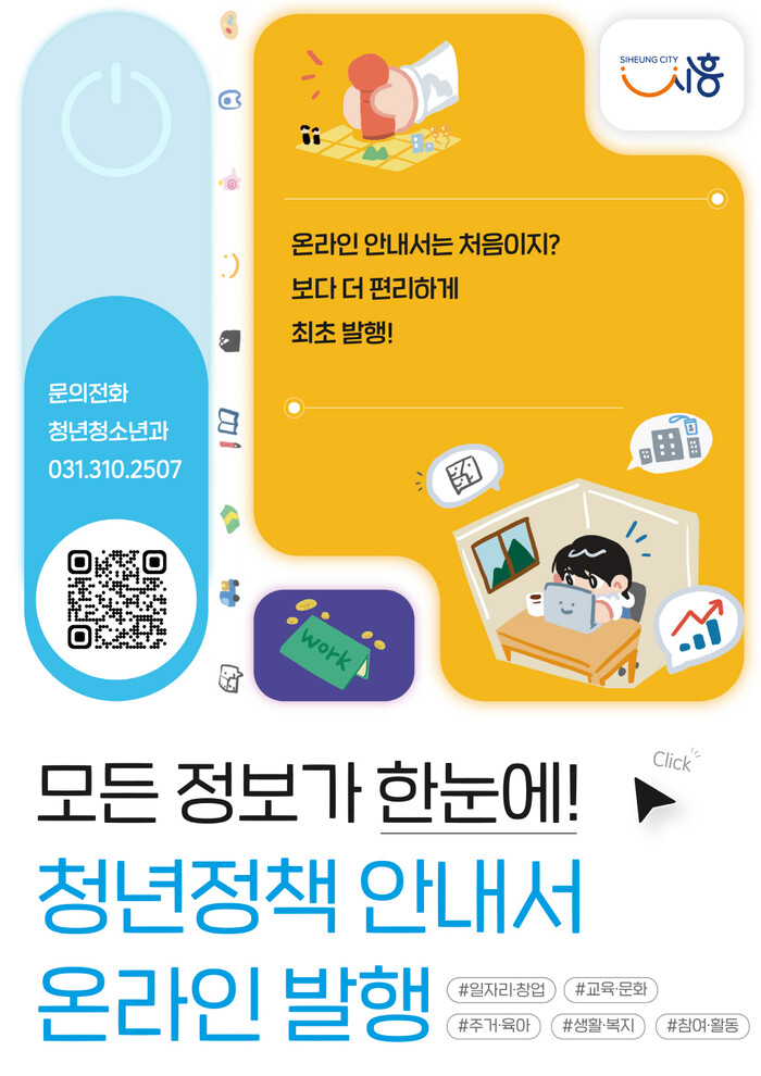 시는 그동안 청년정책 안내서를 종이 책자로 제작해 관내 동 행정복지센터, 도서관, 시흥시청렴공간(청년협업마을, 청년스테이션) 등에서 배포해 왔다. 올해는 시흥시청렴공간에서 종이 책자를 배포하고, 더 많은 청년이 시간과 장소에 구애받지 않고 활용할 수 있도록 시흥시 청년정책 드라이브(블로그)와 연계한 온라인 전용 콘텐츠를 추가로 제작해 청년들의 정책 접근성을 높였다.