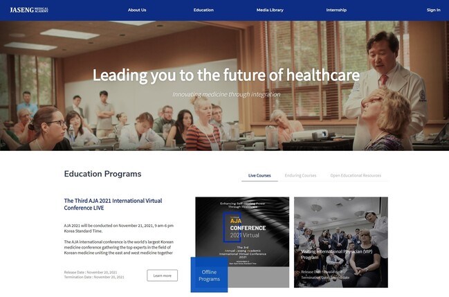 자생메디컬아카데미는 신종 코로나바이러스 감염증(코로나19) 장기화에 대응해 기존 워크숍과 오프라인 강의를 온라인 플랫폼 교육으로 빠르게 전환했다. 이와 함께 자생국제학술대회 또한 11월에 온라인 개최해 국내외 한의사와 의사, 오스테오패틱의사(DO), 침구사를 대상으로 온라인 보수교육을 실시할 예정이다.