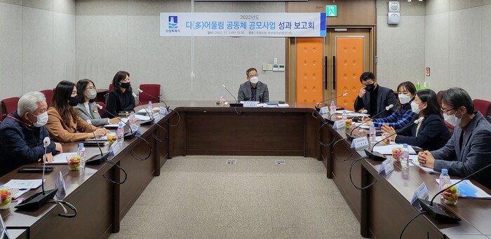 사진/ 3일 수원시청 영상회의실에서 열린 ‘2022년 다(多)어울림 공동체 공모사업 성과보고회’(사진제공=수원시)