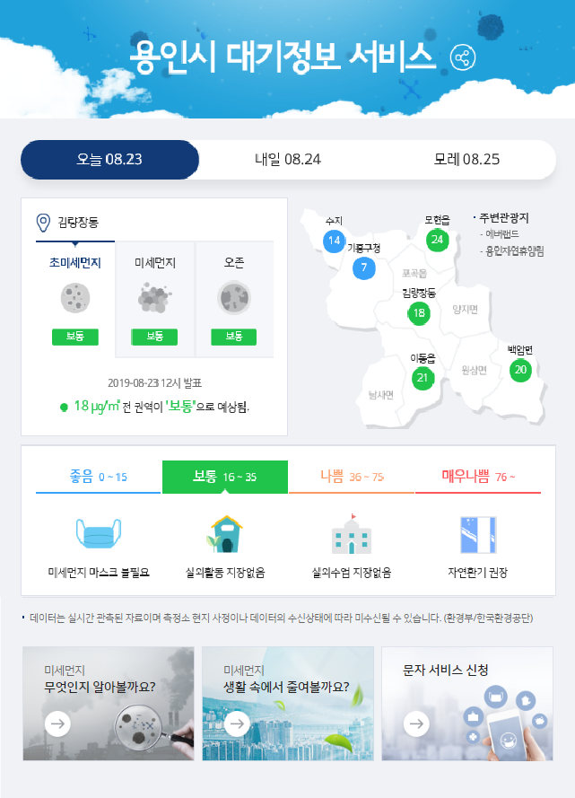 <사진/ 용인시 대기정보 메인화면>