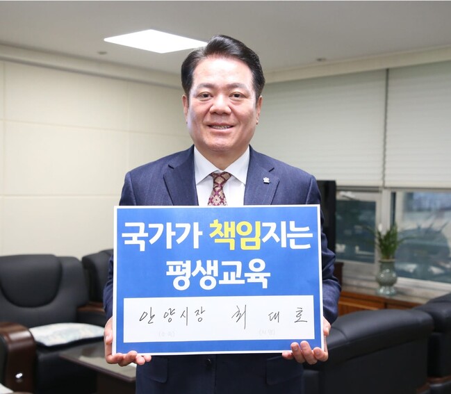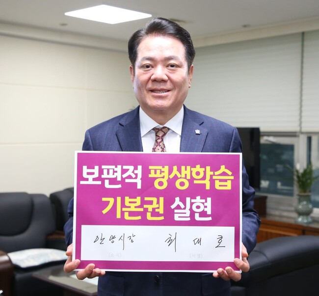 [로컬라이프] 송준형 기자 = 최대호 안양시장은 30일, ‘보편적 평생교육 실현’을 위한 <100만인 서명운동> SNS 챌린지에 동참했다.