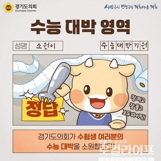 [경기=로컬라이프] 송준형 기자 = 김진경 경기도의회 의장이 대학수학능력시험을 앞두고 수험생들에게 격려와 응원을 전했다.