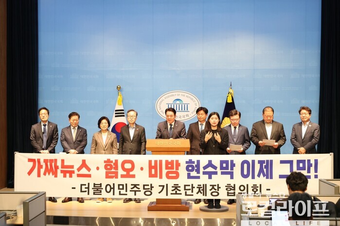 [로컬라이프] 박봉민 기자 = 더불어민주당 기초단체협의회(이하 협의회)는 27일, 국회에서 기자회견을 갖고 '가짜뉴스·혐오·비방 현수막 게시 중단'과 이를 위한 관련 입법을 촉구했다.