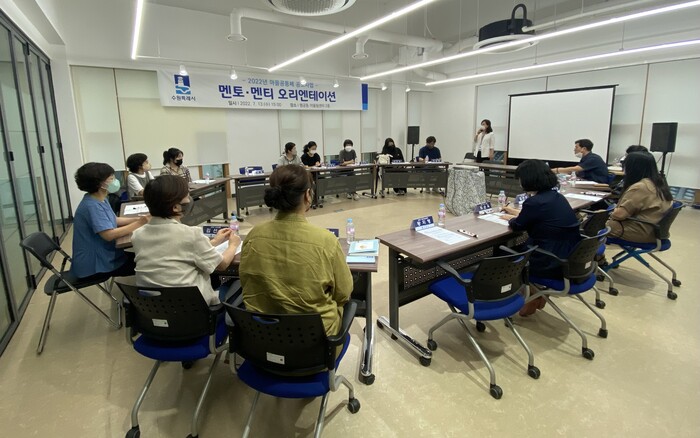 수원시가 13일 행궁동 어울림센터에서 ‘2022년 마을공동체 공모사업 멘토·멘티 오리엔테이션’ 행사를 열었다.