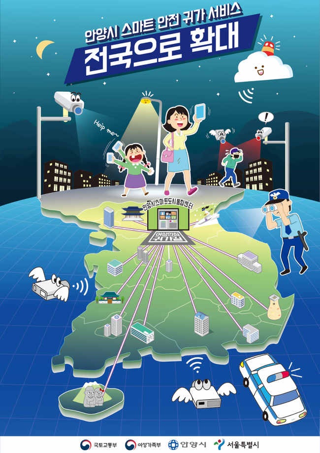 금번 국토교통부 스마트시티 통합플랫폼과 연계하는 시범사업을 통해 안양시 안전귀가 앱이 전국 229개 지자체의 방범용 CCTV 51만대가 자동 연계되어, 지역적 한계를 벗어나 늦은 밤, 귀갓길 현장을 모니터일 함으로써 보다 많은 지역 주민들이 안양시의 안전귀가 서비스를 받게 됐다.