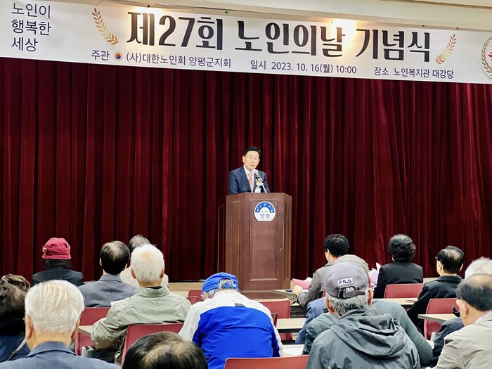 [로컬라이프] 송준형 기자 = 전진선 양평군수는 16일, 10월 경로의 달을 맞아 개최된 ‘제27회 노인의 날’ 기념행사에 함께 했다.