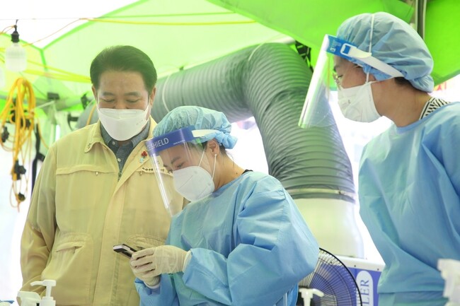 [로컬라이프] 최대호 안양시장은 1일, 코로나19로 1년 6개월 동안 격무에 시달리는 방역 인력의 수고는 언제쯤 끝날까요? 라며, “수고한다! 애쓴다! ” 말보다 더 큰 응원은 없다고 말했다.
