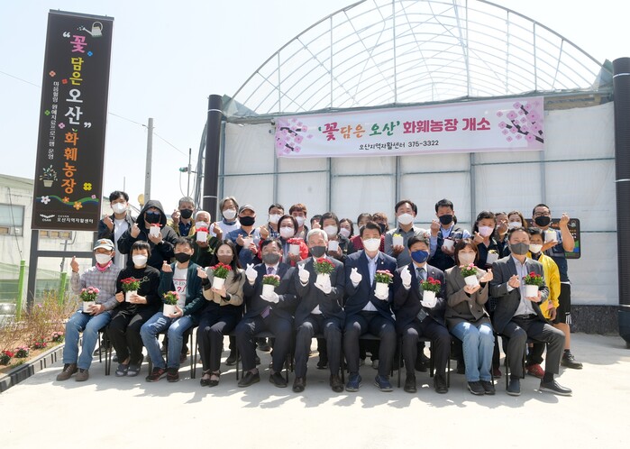 시에 따르면 도심 속 흉물로 남아있던 공동묘지를 정비하고 저소득층 자활일자리 ‘꽃담은 오산’화훼자활농장을 조성해 20일 개소식을 개최했다고 밝혔다.