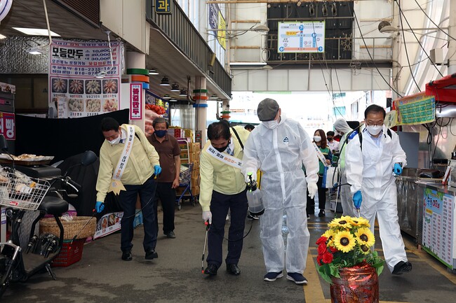 특히, 이번 방역활동에선 방역기로 인한 약품이 시장 방문객 및 상품에 노출되지 않도록 중앙시장상인회와 방역일자리 근로자와 함께 이동하며, 휴대용 방역기 이용으로 노면 위주의 방역을 실시했다.