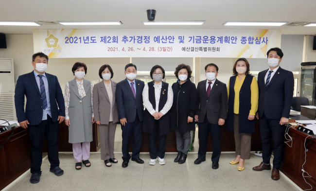 정덕남 위원장의 사회로 진행된 예결특위에서는 코로나19 장기화로 침체된 지역경제 활성화, 시민 편익증진 등을 위한 ‘2021년도 제2회 추가경정예산안’, ‘2021년도 기금운영계획 변경안’ 건에 대해 면밀한 심사를 거쳐 추경예산안을 원안 가결했다.
