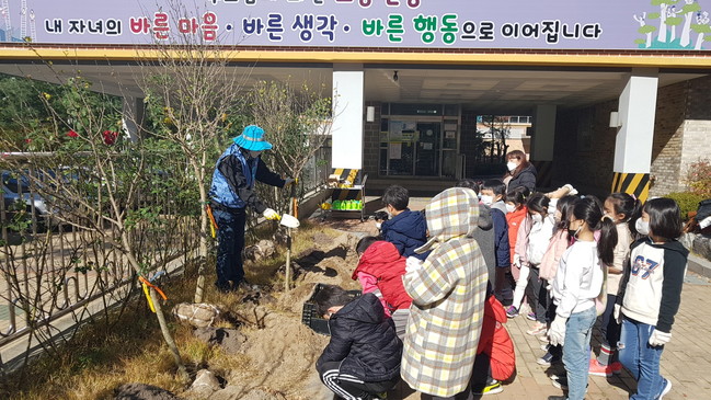 이에 따라 지난 10일 다솔초에서는 무궁화 선양 시민단체인 ‘무궁화를 사랑하는 사람들’이 1학년 학생들과 학부모를 대상으로 나라꽃 무궁화 식목행사를 진행, 쉽고 올바른 무궁화 바로알기 교육을 병행해 나라꽃 무궁화에 대한 관심을 높이는 계기를 만들었다.