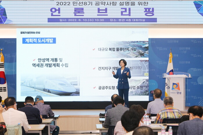 [로컬라이프] 송준형 기자 = 안성시(시장 김보라)가 10일, 안성시청 4층 대회의실에서 언론인 및 관계 공무원 등 약 60여명이 참석한 가운데 ‘민선8기 공약사업’ 언론브리핑을 개최했다.