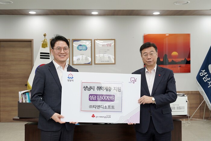 신 시장은 “작년에 이어 올해도 정신질환자 가구 지원을 위한 소중한 나눔을 실천해 주신 티앤디소프트에 감사드린다”며 “이번 기부가 마중물이 되어 성남 전역에 나눔의 물결로 퍼지길 기대한다”고 말했다.