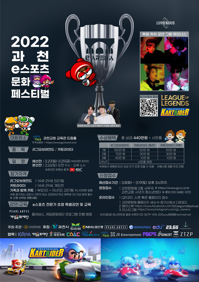 한편, 이번 행사는 과천 지역의 청소년, 종교, 게임 분야의 기관 및 단체 15곳과 국내 유수의 게임회사인 펄어비스가 후원 및 협력한다는 점에서 주목을 받고 있다.