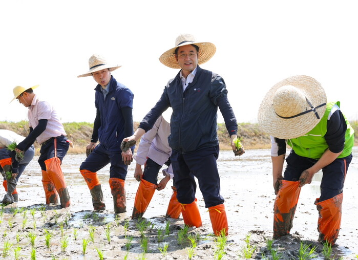 이번 행사는 고양시 지역 농촌지도자연합회, 농업기술센터 주관으로 열렸으며, 이동환 시장을 비롯해 농촌지도자, 지역 농업인 등 20여 명이 참석해 전통 손모내기와 이앙기를 이용한 기계 모내기를 함께 시연하며 풍년을 기원했다.