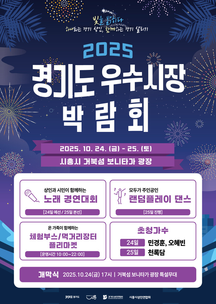 시흥시(시장 임병택)는 오는 10월 24일부터 25일까지 이틀간 거북섬 보니타가 광장에서 ‘2025년 제11회 경기도 우수시장 박람회’를 개최한다.