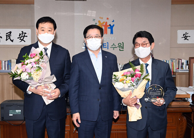 사진/염태영 시장, 주민자치위원장협의회 신임·전임회장에게 ‘축하와 감사’ 전해(사진제공=수원시)