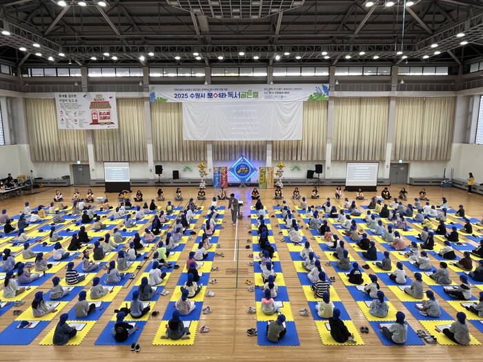 초등학생 500명이 참여한 ‘2025 수원 독서골든벨’ 대회가 11일 경기도인재개발원 체육관에서 열렸다.