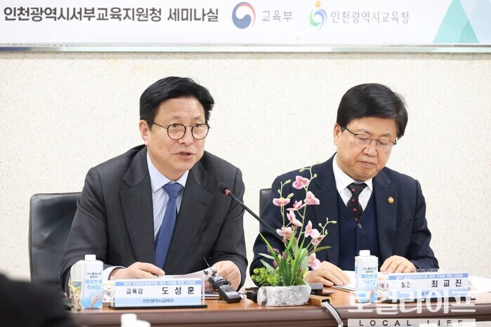 이날 간담회에 참석한 도성훈 인천광역시교육감은 자신의 페이스북을 통해 “인천 서부교육지원청에서 최교진 교육부장관과 함께 학생맞춤통합지원 체계 구축을 위한 현장 간담회를 가졌다”고 밝혔다.
