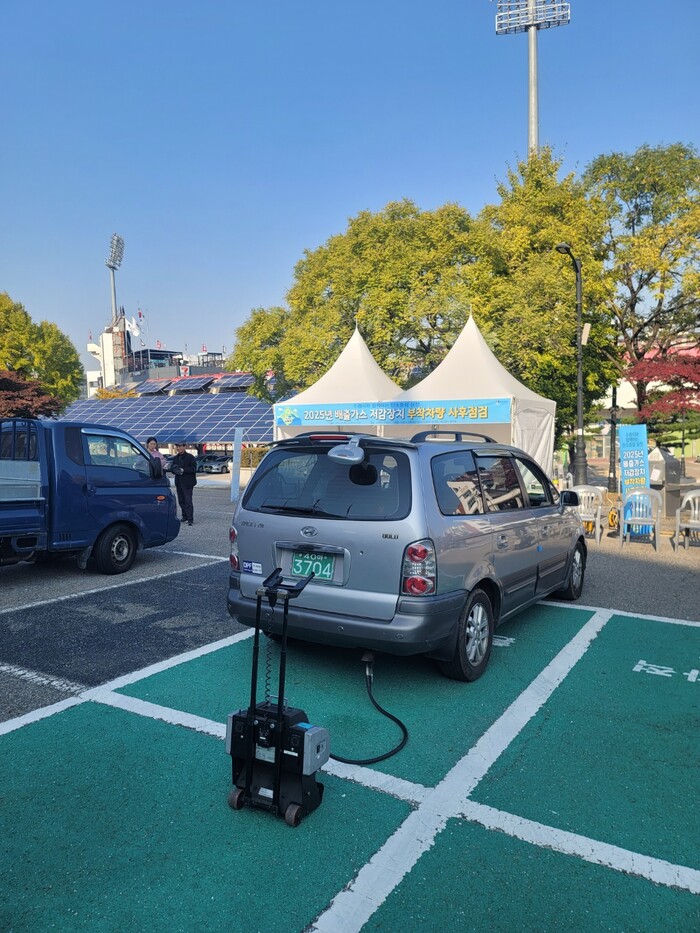 수원특례시(시장 이재준)는 5일 수원종합운동장 주차장에서 수도권대기환경청, 배출가스저감장치(DPF) 제작사와 함께 관내 DPF 부착 차량을 대상으로 합동점검을 했다.
