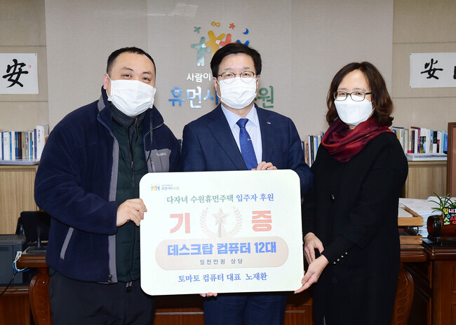 노재환 토마토컴퓨터 대표는 23일 염태영 수원시장 집무실을 방문해 데스크탑 컴퓨터 12대(1000만 원 상당) 후원을 약속했다.
