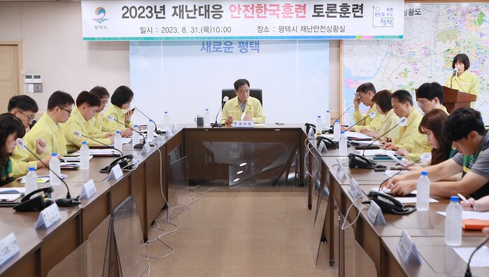 같은 시간, 평택시 재난안전상황실에서는 재난에 대한 상황 판단 회의와 정장선 평택시장 주재의 재난안전대책본부를 가동해 토론훈련을 시행했다.