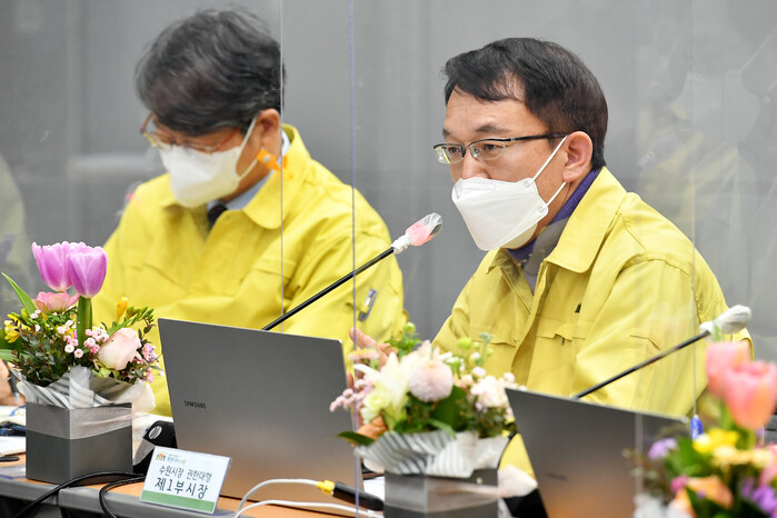 사진/조청식 제1부시장이 회의에서 발언하고 있다.(사진제공=수원시)