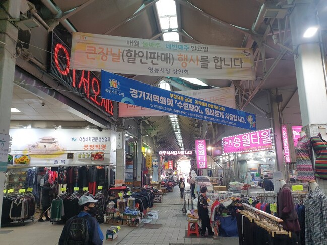 사진/수원시내 전통시장에 게시된 지역화폐 거래질서 확립 안내 현수막.(사진제공=수원시)
