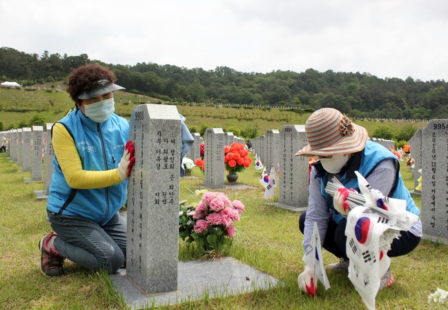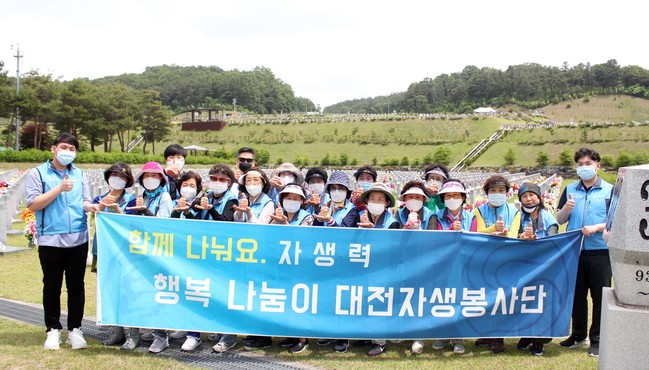 이날 대전자생한방병원 임직원, 대전자생봉사단 20여명은 한 여름을 방불케 하는 더위 속에서도 묘비들 옆에 태극기를 꽂고 비석 닦기, 잡초 제거 등 묘역 가꾸기를 실시했다. 순국선열과 호국영령들의 숭고한 희생에 대한 예우와 존경을 전하자는 취지에서다.
