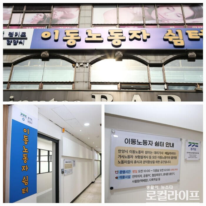 한편, 안양시의 ‘이동노동자 쉼터’는 안양시 동안구 관평로182번길 43에 위치해 있으며, 월~금 오전 10시부터 다음날 오전 2시까지 이용할 수 있다.