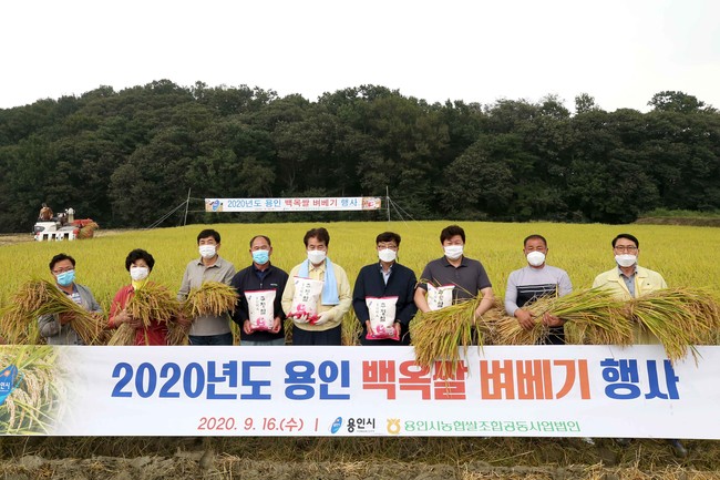 이날 백 시장은 직접 콤바인을 몰아 벼를 수확하고 농민들과 함께 기쁨을 나눴다. 이날 행사엔 백 시장을 비롯해 이명희 용인시 농협 쌀 조합 공동사업법인 대표, 윤기현 백암농협장, 농민 등 30여명이 참여했다.