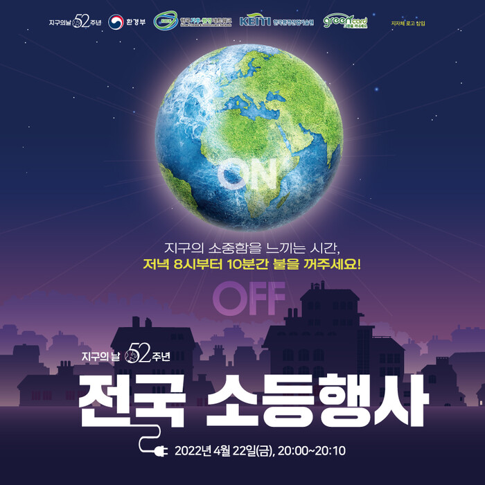 특히 지구의 날인 22일 오후 8시부터 10분간 『전국 소등행사』를 실시한다.