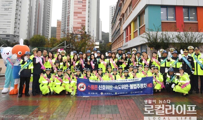 [시흥=로컬라이프] 송준형 기자 = 시흥시와 유관기관은 22일, 산현초등학교 앞에서 ‘안전 통학로 캠페인’을 진행했다.