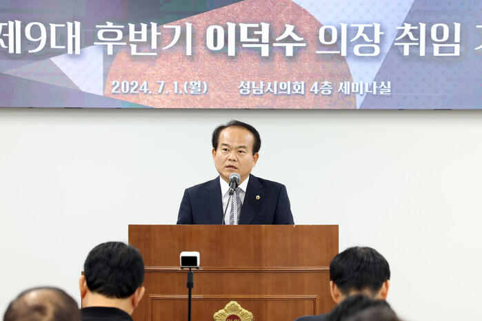 사진/성남시의회 제9대 후반기 이덕수 의장 취임 기자회견 사진 (사진제공=성남시의회)