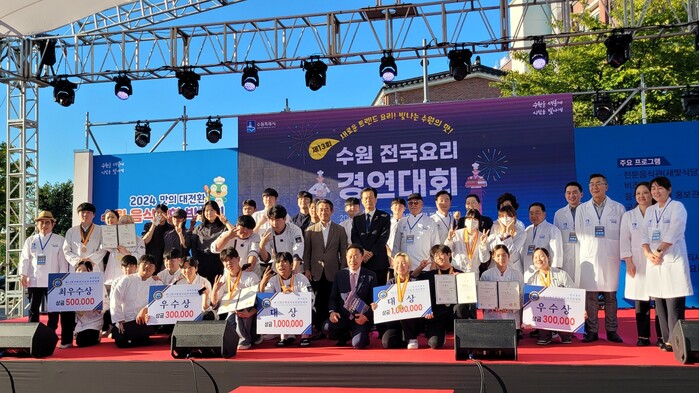 사진/제13회 수원 전국요리경연대회 수상자들이 기념촬영을 하고 있다.(사진제공=수원시)