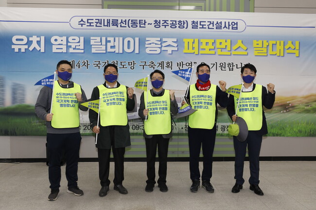 화성시 동탄역과 청주공항을 잇는 ‘수도권 내륙선’의 유치를 염원하는 ‘릴레이 종주 퍼포먼스’가 30일 동탄역에서 시작됐다.