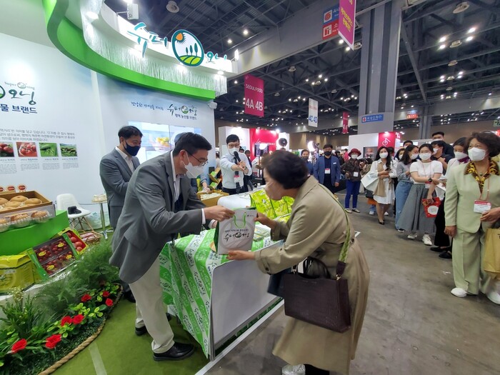 평택시(시장 정장선)는 지난 7일부터 10일까지 4일간 일산 킨텍스에서 열린 『2022년 서울국제식품산업대전』에 참가하여 평택시 농.특산물 통합브랜드 ‘슈퍼오닝’ 등 평택 농산물을 관람객들에게 홍보하는 시간을 가졌다.