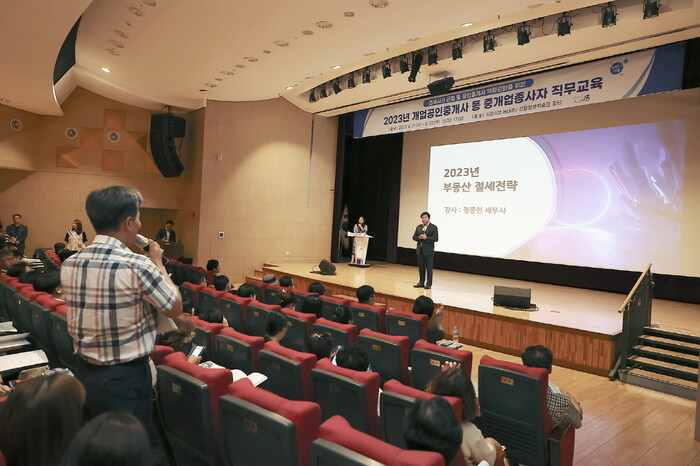 시흥시(시장 임병택)는 지난 21일부터 22일까지 이틀간 시청 늠내홀 및 정왕평생학습관에서 관내 개업공인중개사와 중개보조원 등 약 700명을 대상으로 ‘2023년도 개업공인중개사 등 부동산중개업종사자 직무교육’을 진행했다.