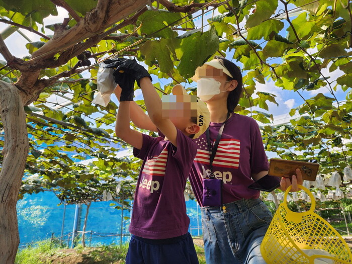 사진/수원시 과수공원에서 수확체험을 하는 모습.(사진제공=수원시)