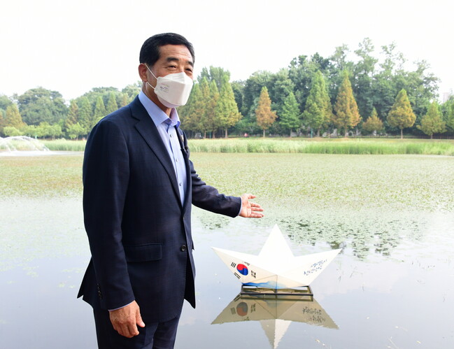 [로컬라이프] 윤화섭 안산시장은 11일 제76주년 광복절을 앞두고 안산호수공원 내 호수에 애국심을 담은 태극 종이배를 띄우며 “시민과 함께 천년안산 역사를 바로 세우겠다”라고 말했다.