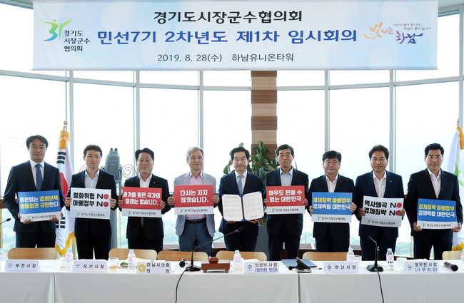 한편 이날 회의에서는 일본 아베정부의 경제보복조치에 대한 기초지방정부의 역할에 관해 토론이 이어졌다. 이에 △‘정부와 지자체의 대응 노력을 지지하며 공동 대응에 적극 협력함’ △‘시민들의 자발적인 일본 제품 불매운동을 지지하며, 운동 성공을 위해 적극 지원함’ △‘아무도 흔들 수 없는 굳건한 대한민국 만들기에 최선을 다함’ 등을 골자로 한 결의문을 경기도시장군수협의회 명의로 공식 채택했다.