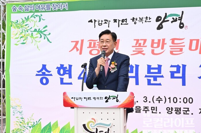 이와 관련해 전진선 군수는 자신의 페이스북을 통해 “지평면 꽃반들마을, 송현4리 창립을 축하드린다”고 밝혔다.