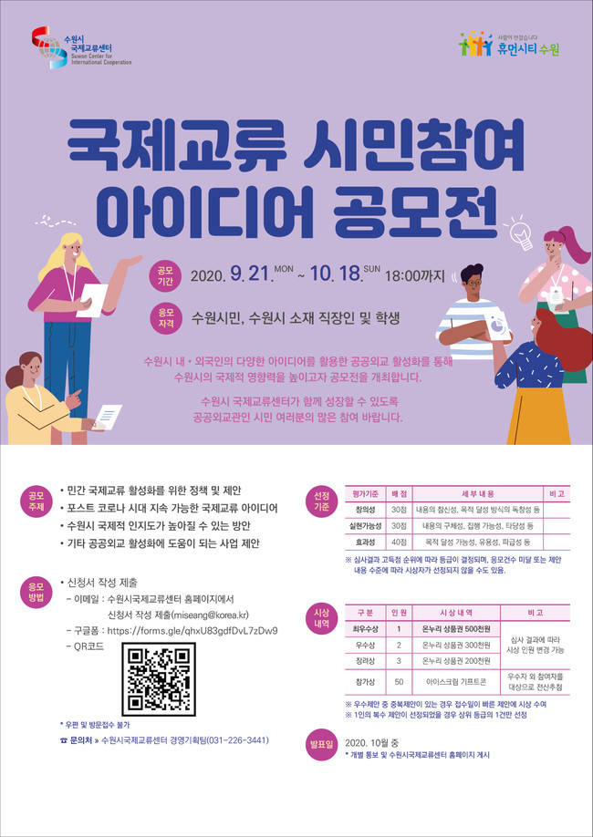 [로컬라이프] 수원시, '국제교류센터' 10월 18일까지 ‘국제교류 시민참여 아이디어’ 공모