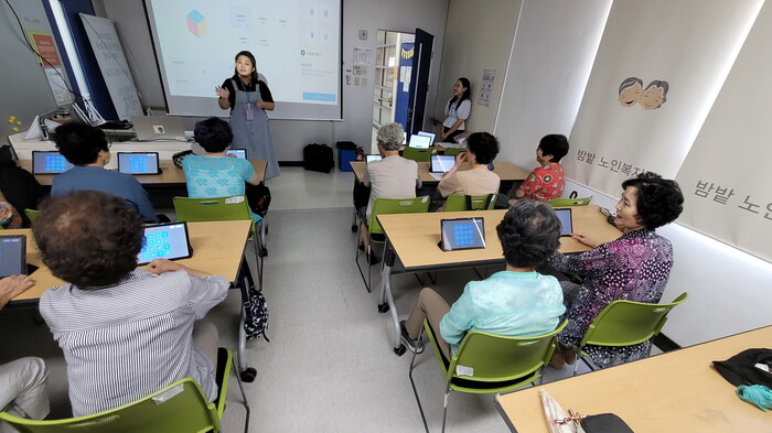 사진/밤밭노인복지관에서 어르신들에게 치매예방교실을 운영하고 있다.(사진제공=수원시)