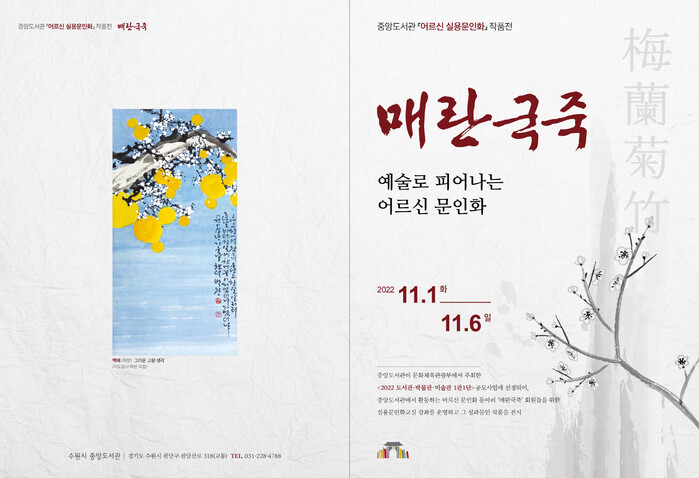 수원시 중앙도서관이 11월 1일부터 6일까지 선경도서관 1층 로비에서 ‘매란국죽(梅蘭菊竹), 예술로 피어나는 어르신 문인화(文人畵) 작품전’을 연다.